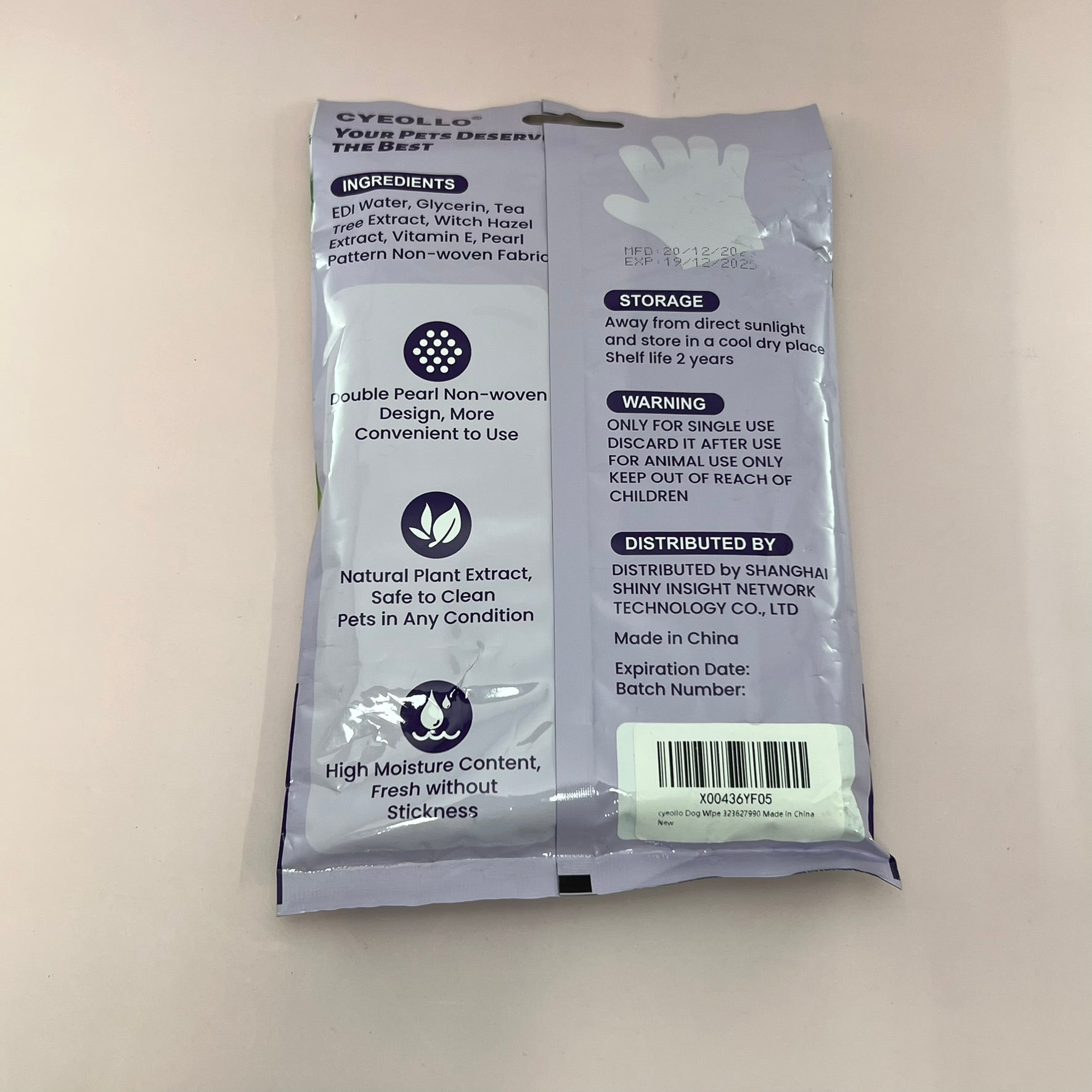 Cyeollo Pet Cleansing Glove Wipes offer a convenient, mess-free grooming solution for dogs and cats. Each glove features a soft, textured surface infused with Witch Hazel Extract and Tea Tree Extract to gently cleanse fur and skin while soothing irritation. Enriched with Vitamin E, these wipes nourish and protect delicate paw pads and facial areas. The lickable, rinse-free formula makes them ideal for quick cleanups between baths—simply wipe and go. Perfect for sensitive pets, this 6-piece set delivers professional-grade care in an easy-to-use glove design.